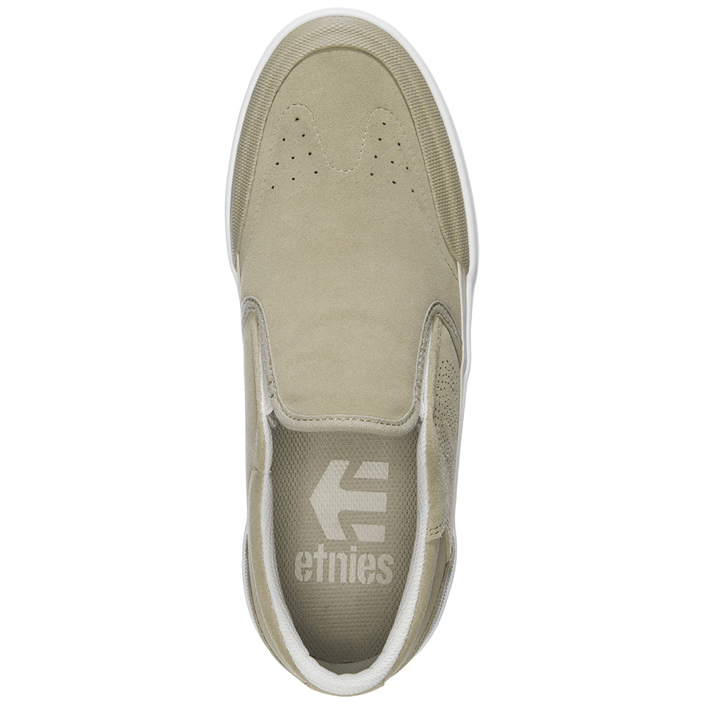 A brand new slip-on by etnies that has Michelin tread patter inspired by the Marana. A double wrapped vulcanized shoe with foxing tape. Extra thick "Drop to the Floor" Pro Foam 2 PU insole with an evertoe rubber toe cap for durability. It has a force shield reinforced upper with a rubber heel wrap for support. Goring construction for easy slip and secure fit.