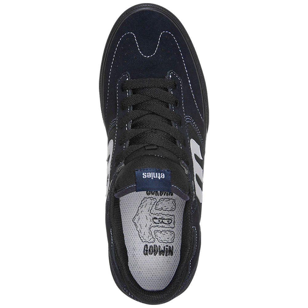 “ I’ve always been a fan of darker shoes, so for my SP23 Windrow Vulc signature colorway I decided to go with navy. As for the graphics, I’ve never been able to draw faces, so that’s why I just draw eyes — this time they’re in the cloud, which I thought was a good representation of British weather (because it’s always raining haha). Hyped on the end result and grateful for the opportunity etnies gave me to have creative control!” -Jordan Godwin